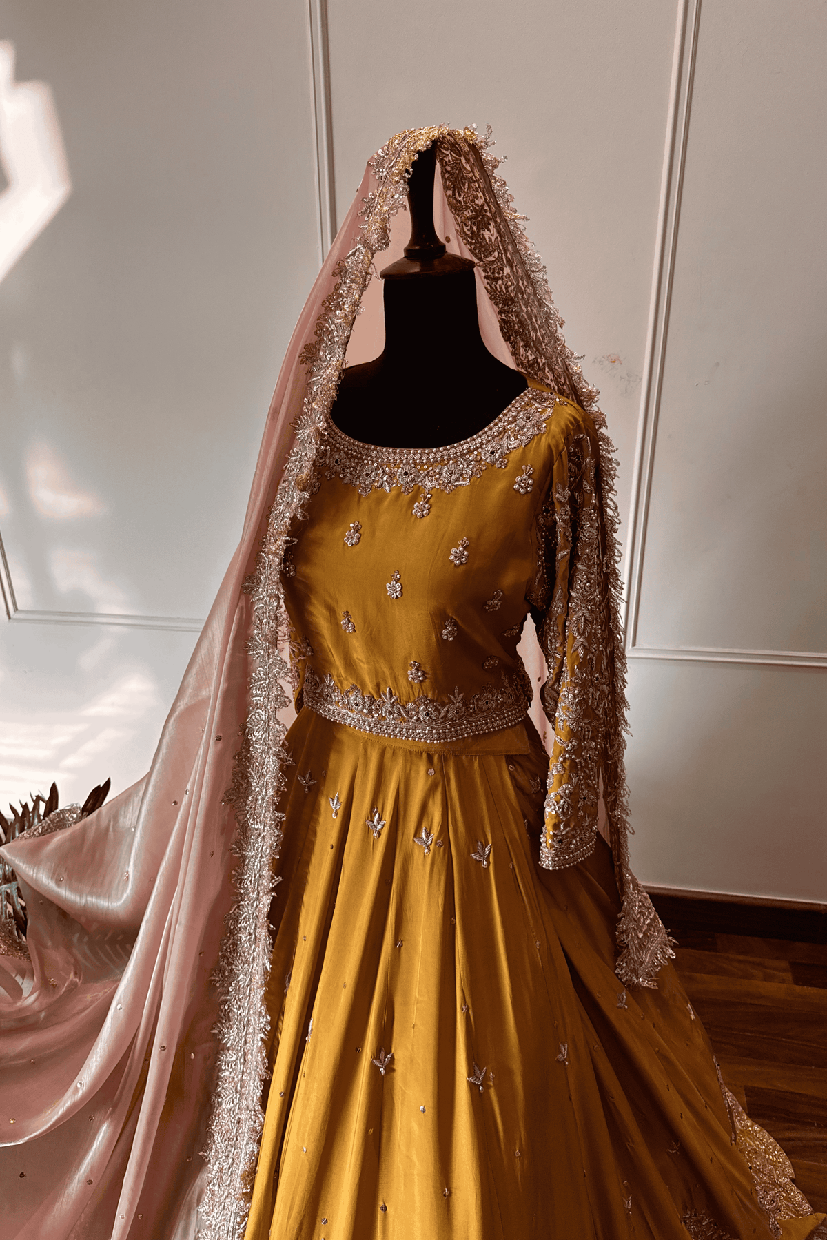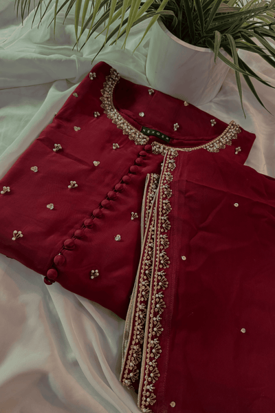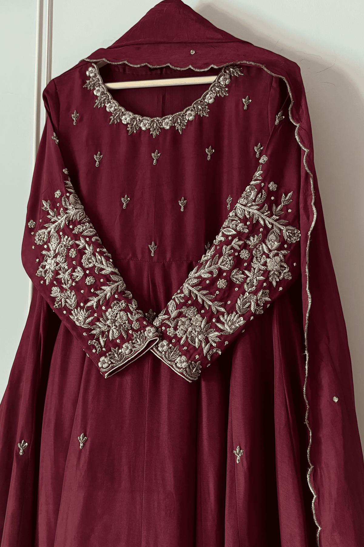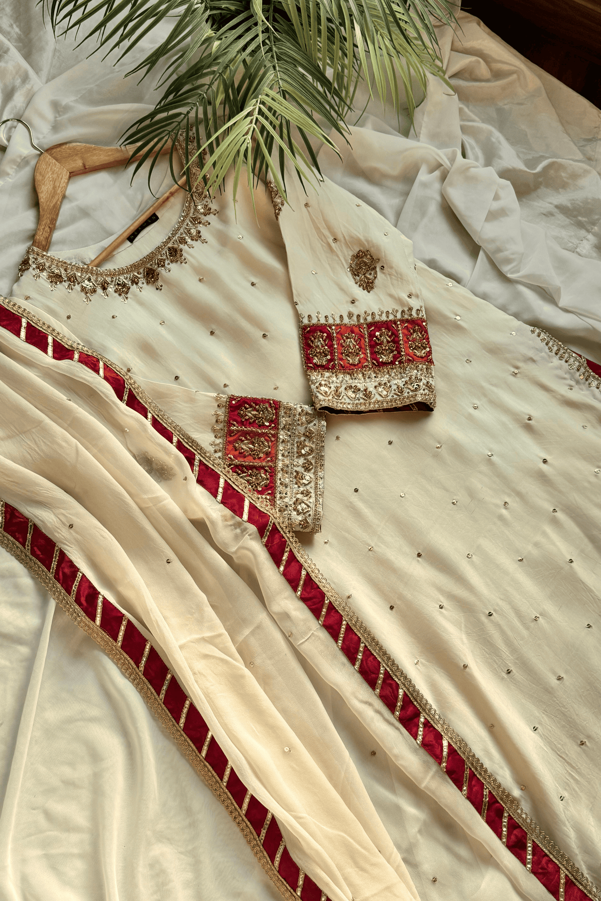 Perfect for a Nikkah ceremony, Moonlight Serenity embodies sophistication, tradition, and subtle grandeur—an ensemble designed for the bride who values timeless elegance and handcrafted luxury.