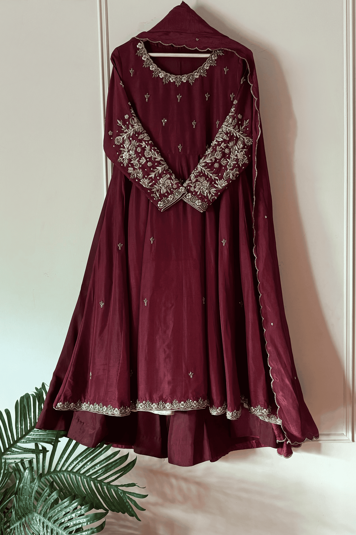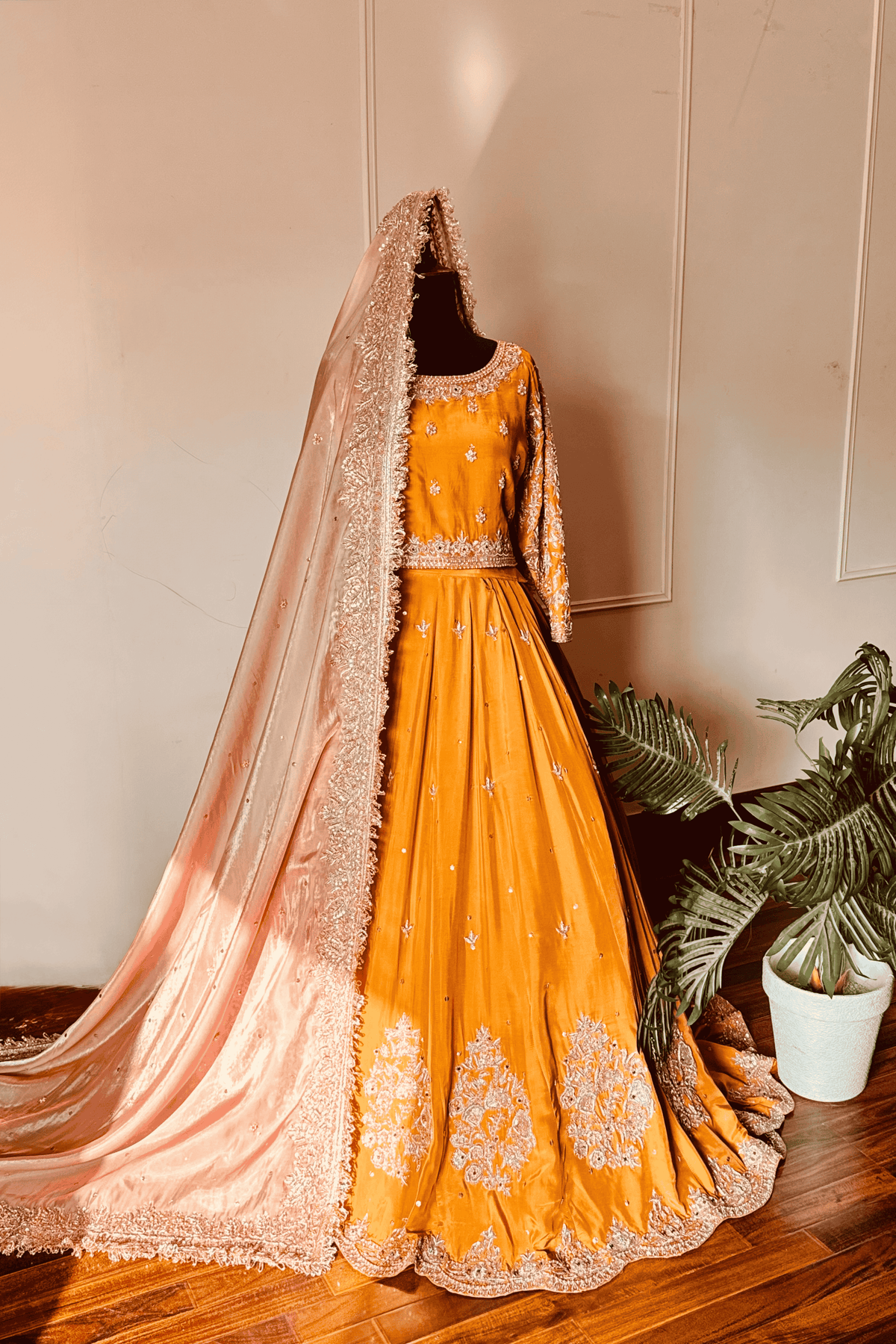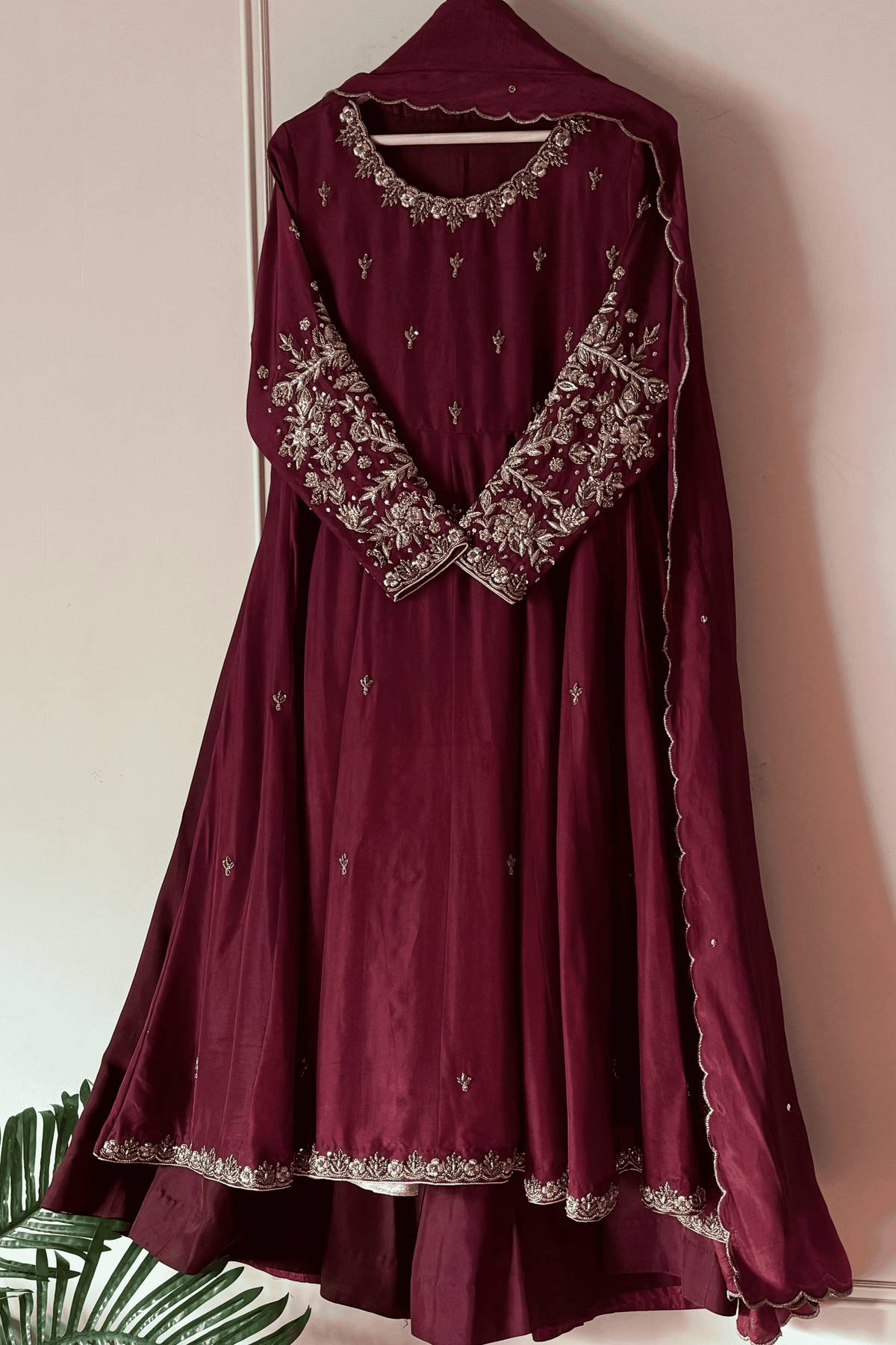 Perfect for a Nikkah ceremony, Moonlight Serenity embodies sophistication, tradition, and subtle grandeur—an ensemble designed for the bride who values timeless elegance and handcrafted luxury.