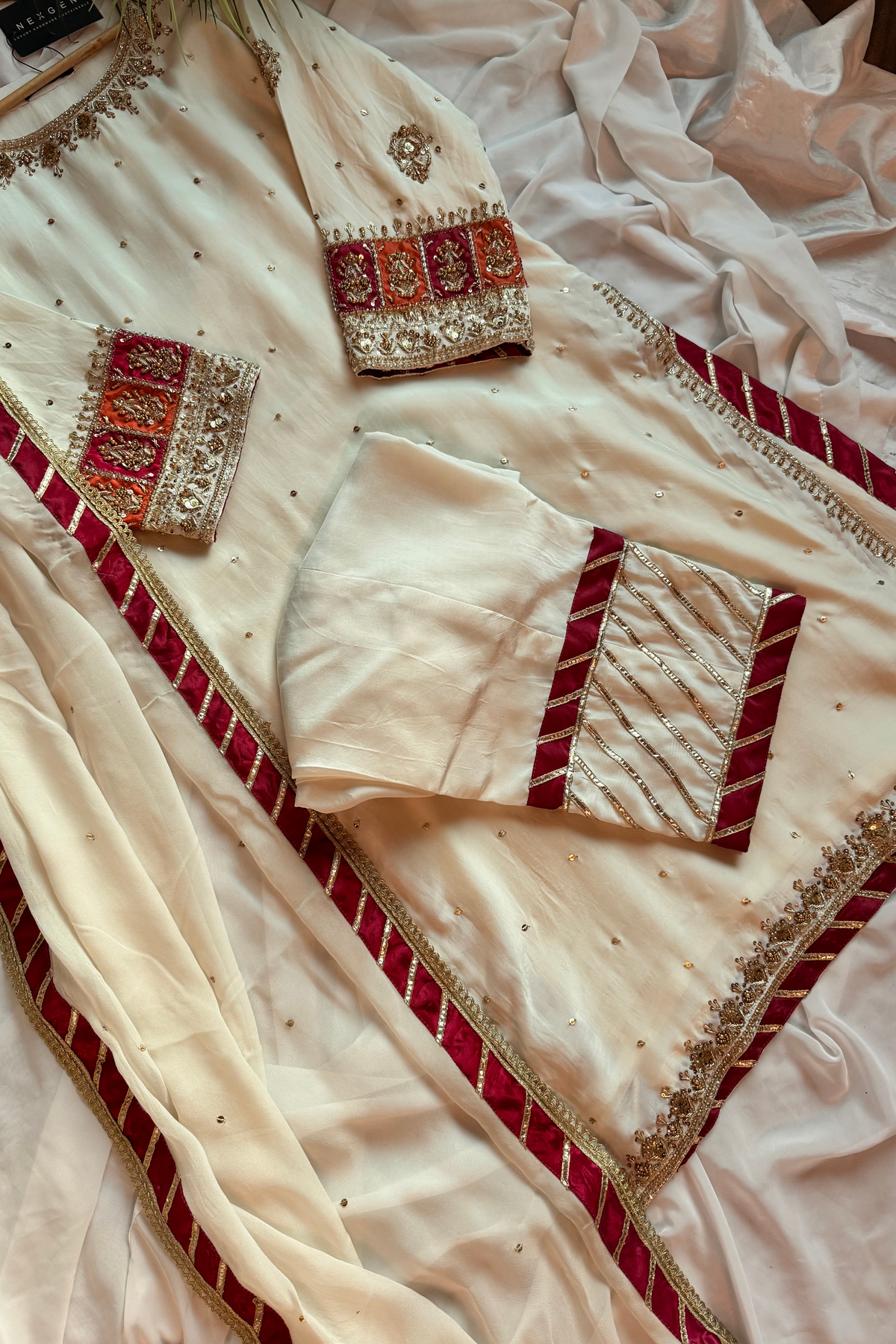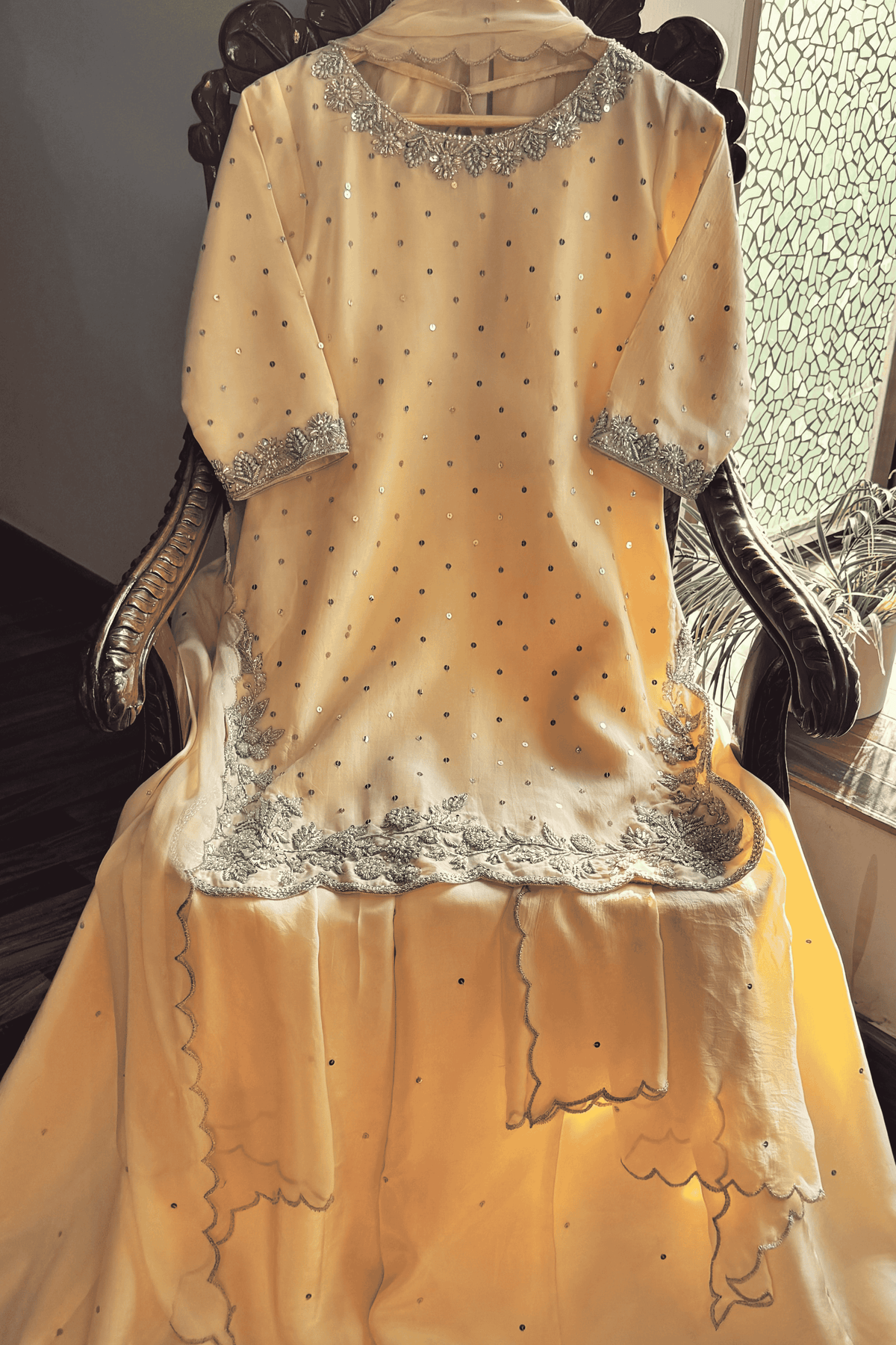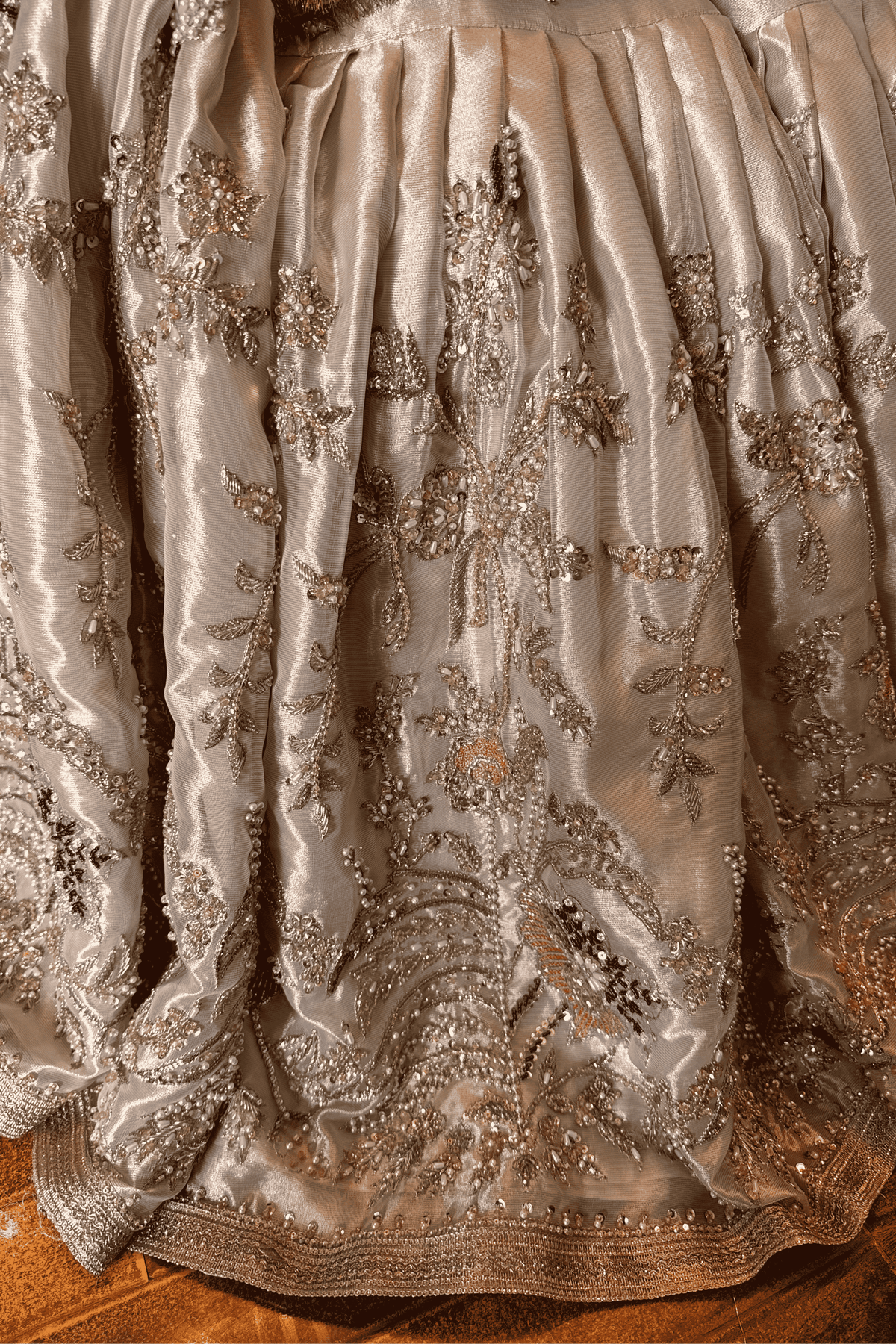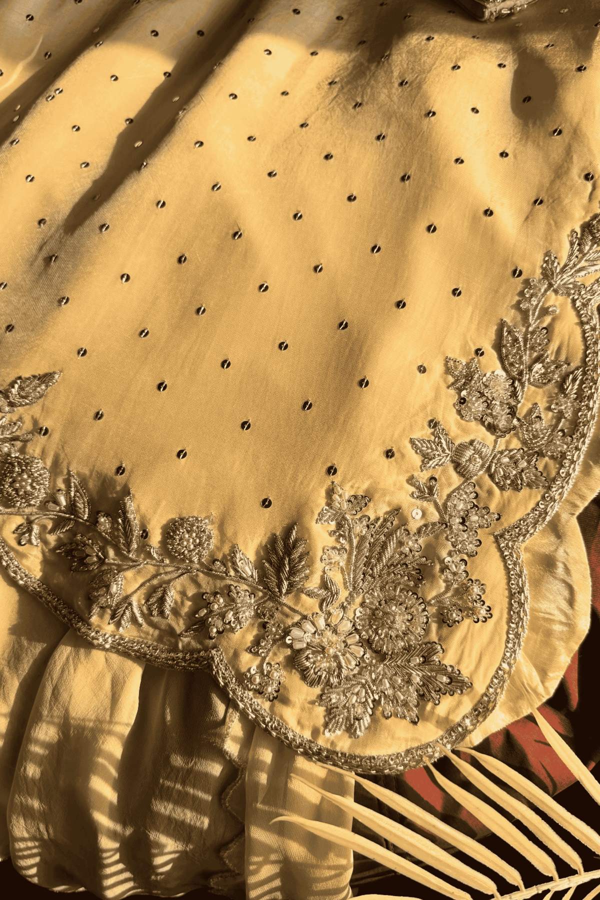 Embellishment: Pure Dabka Zardozi, Cutdana, Tilla, Sequins and Pearls