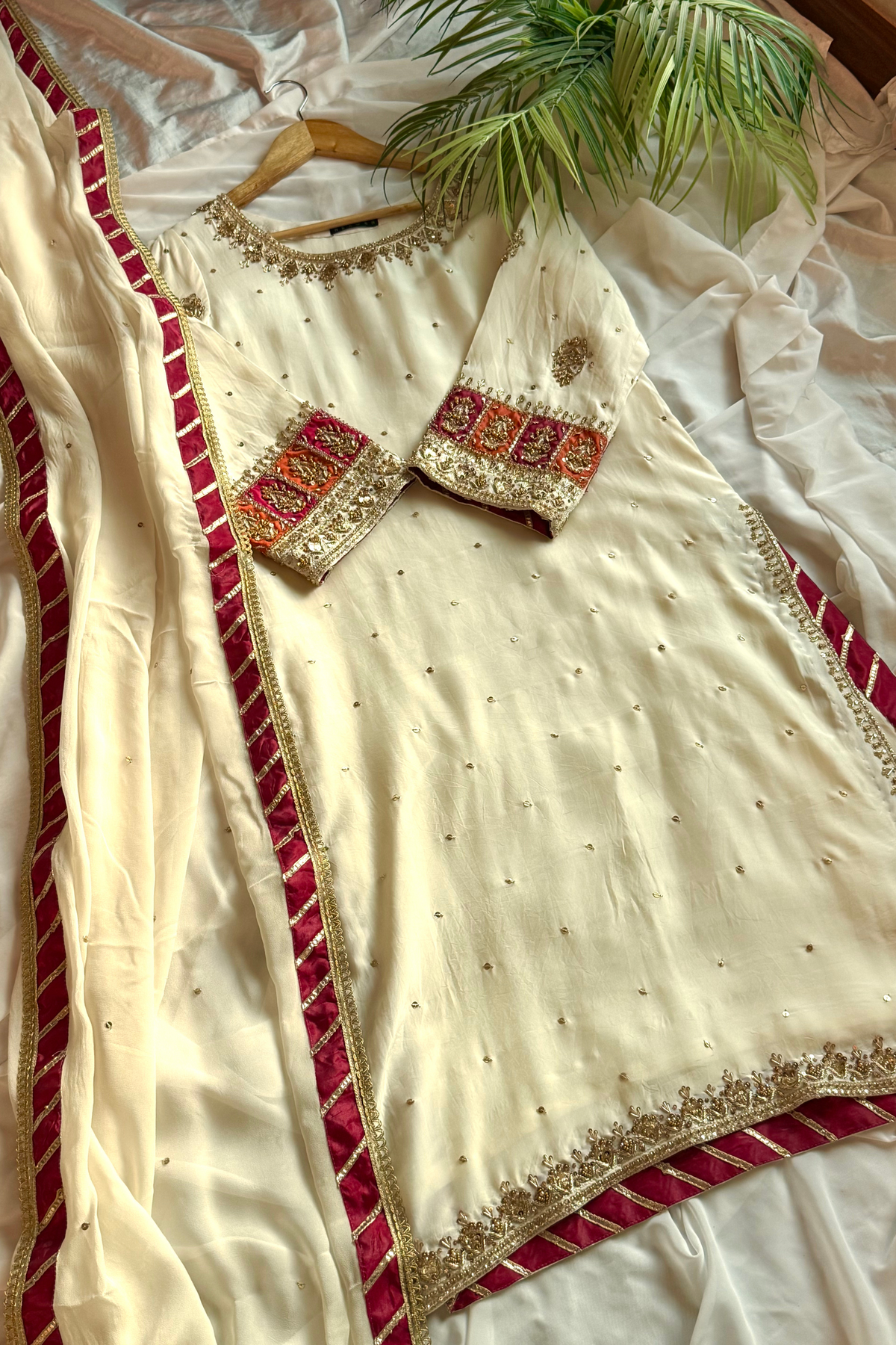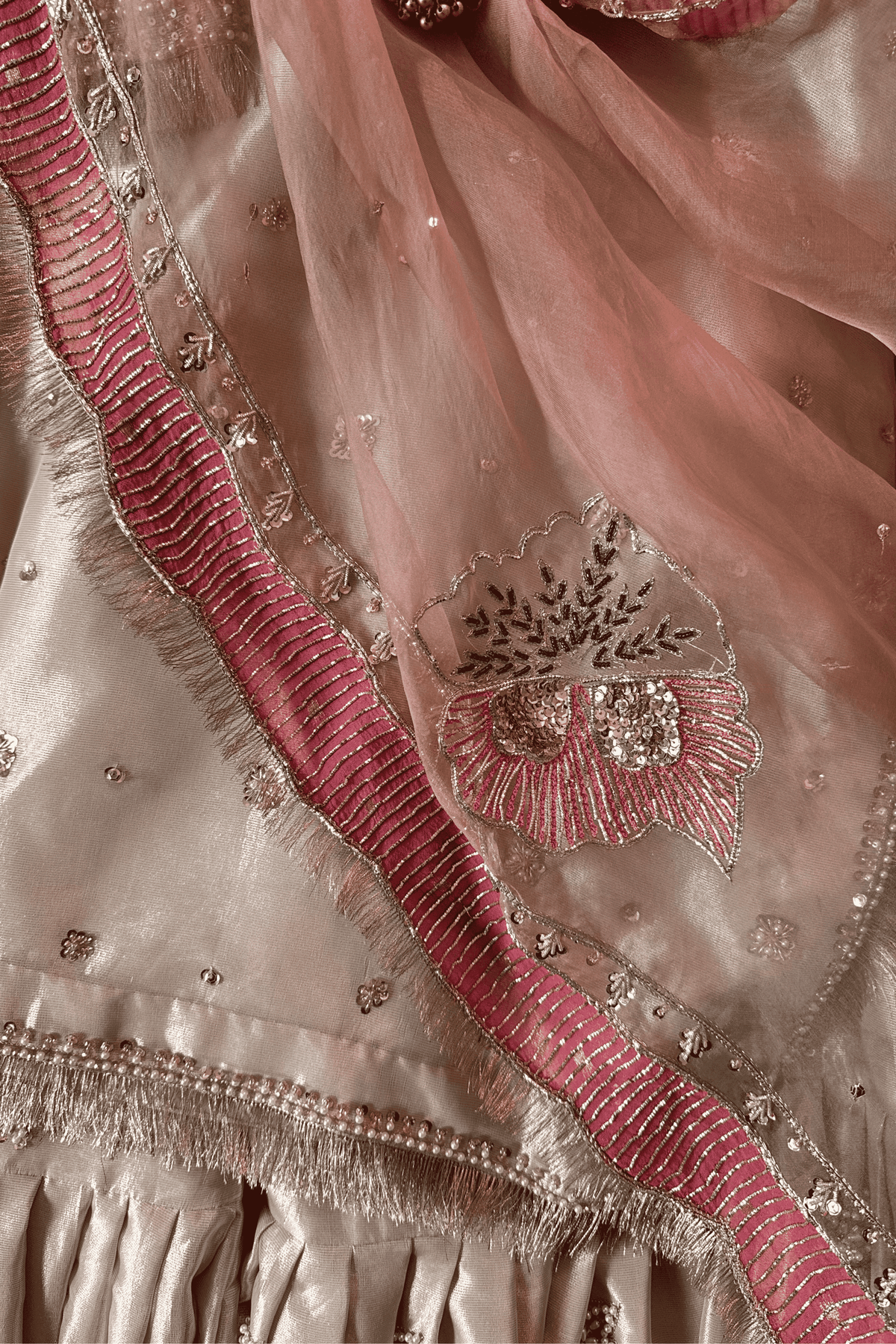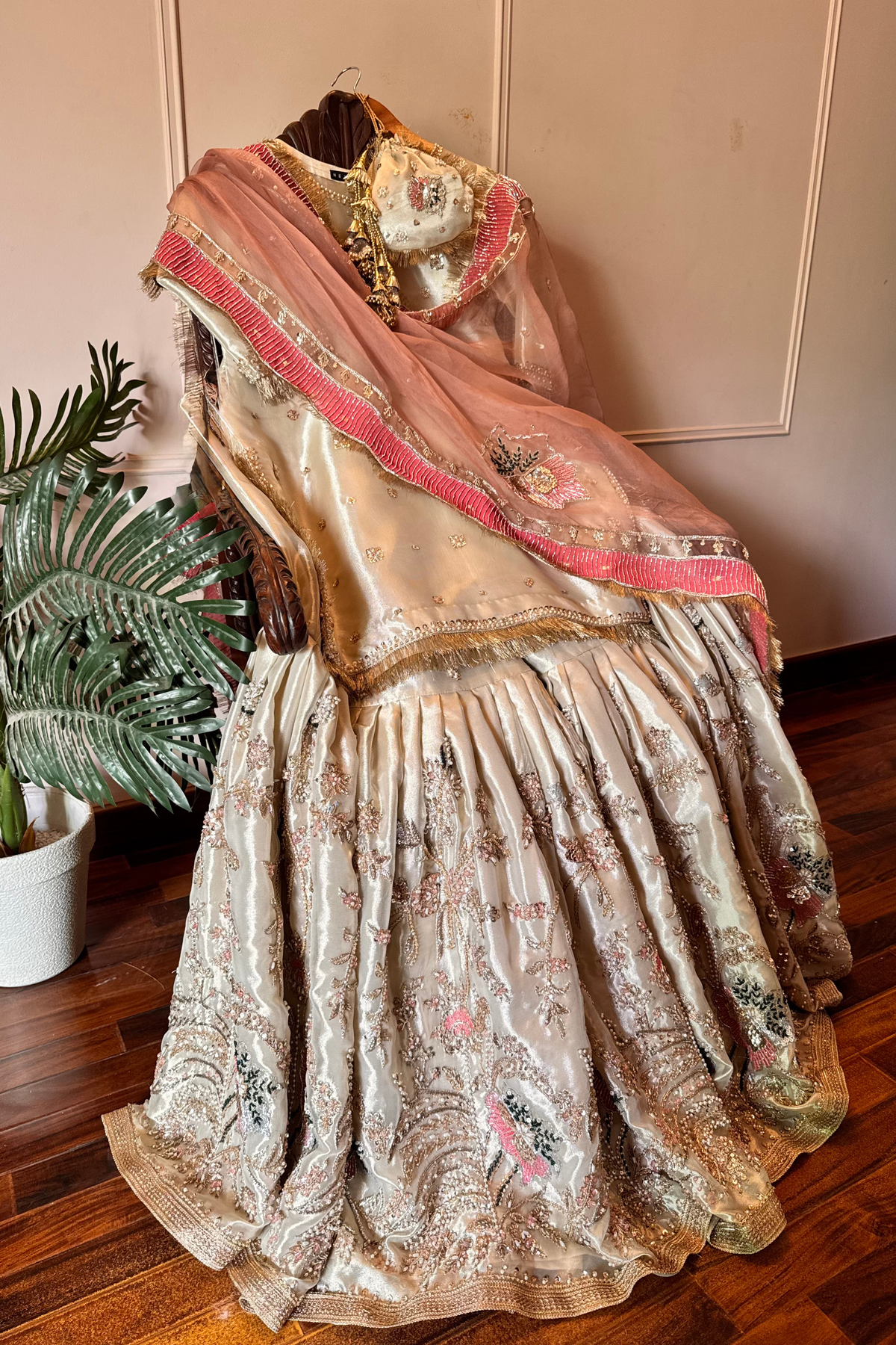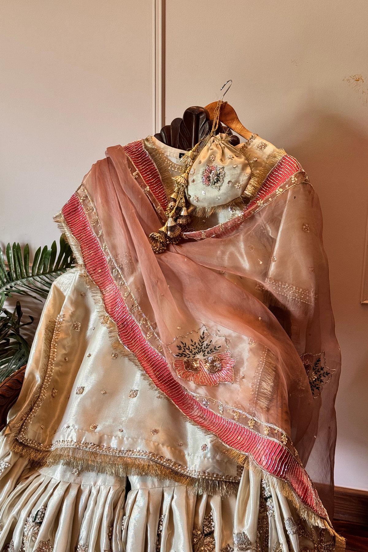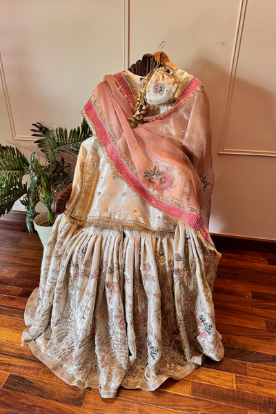 Color: Light Ivory Beige with Blush Pink dupatta
