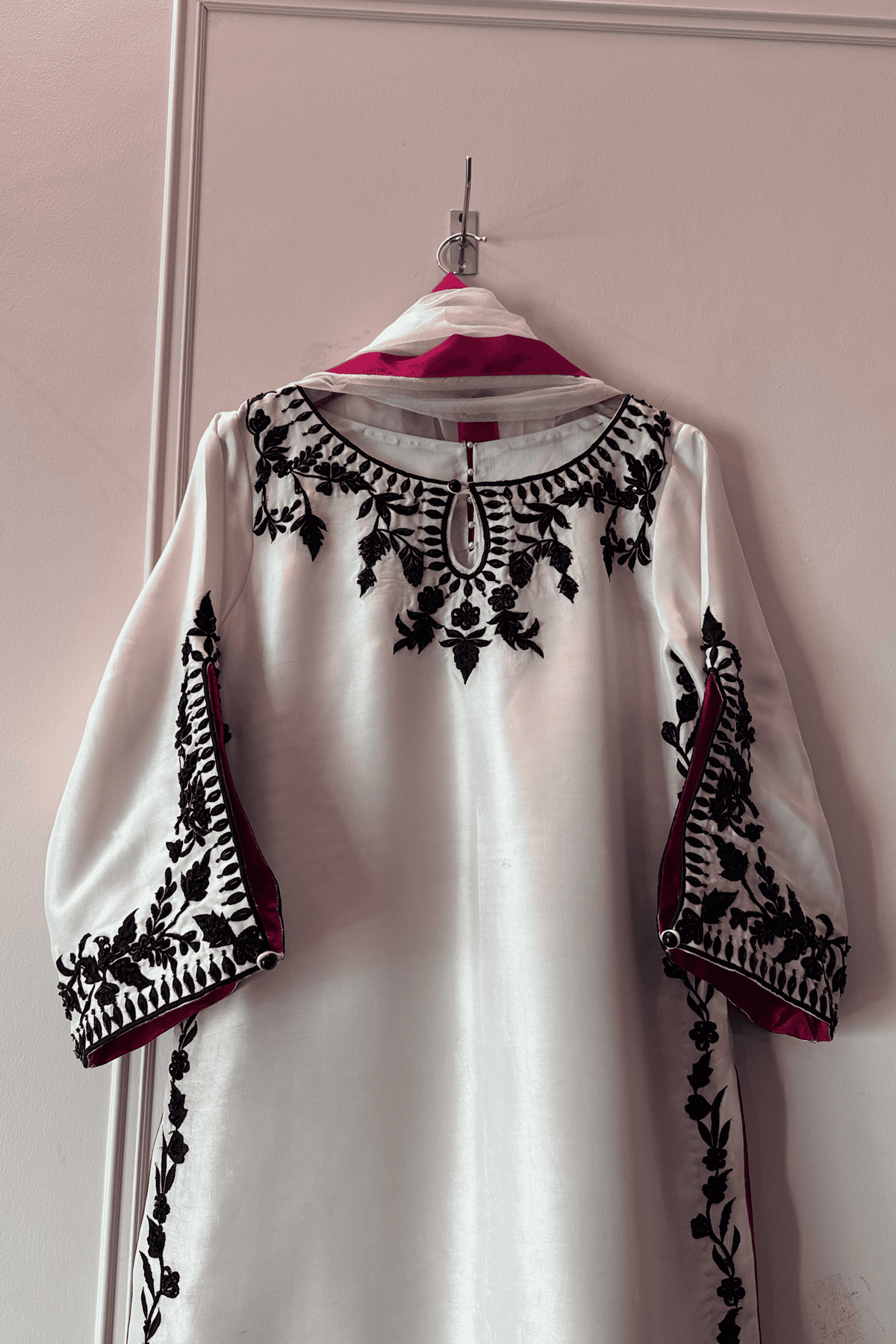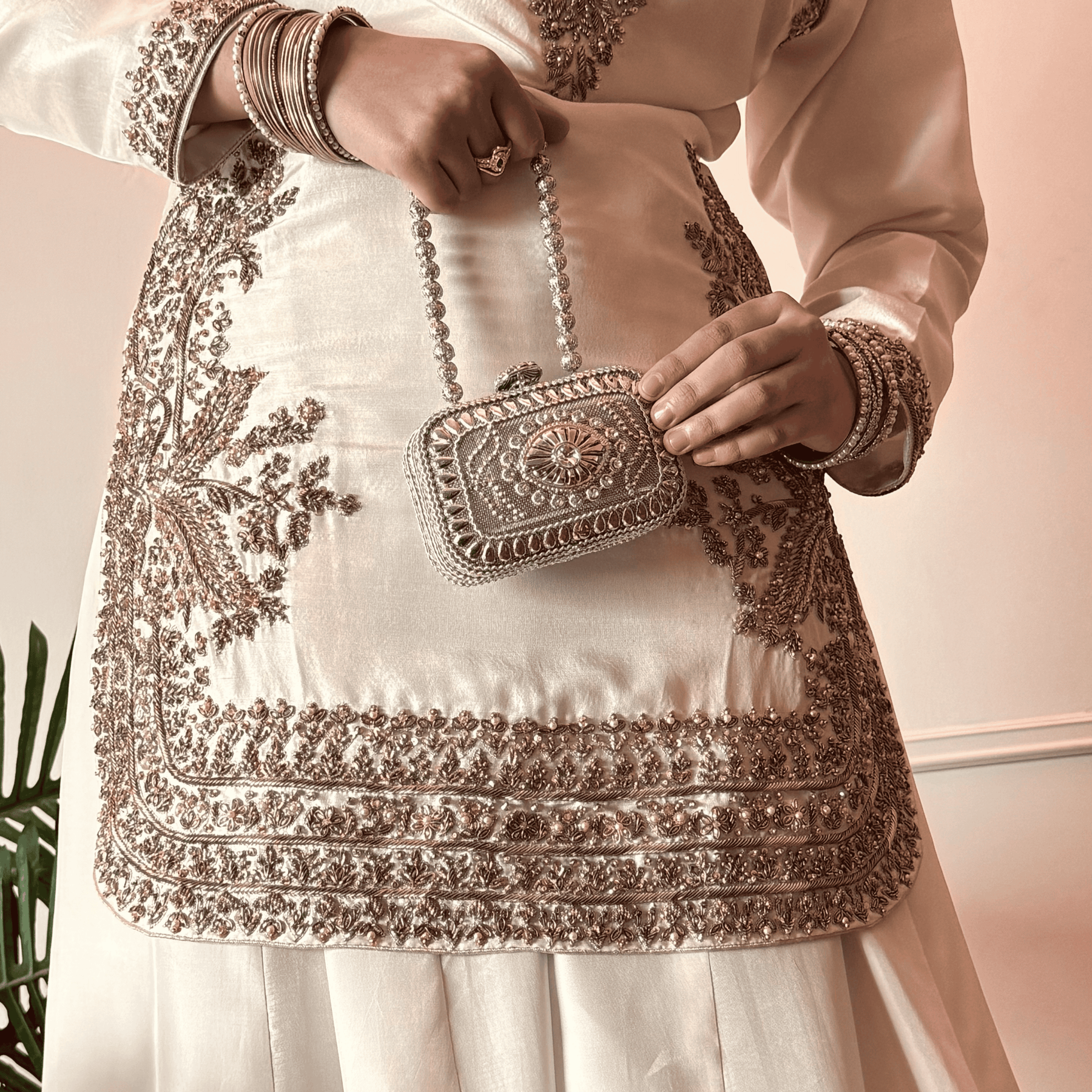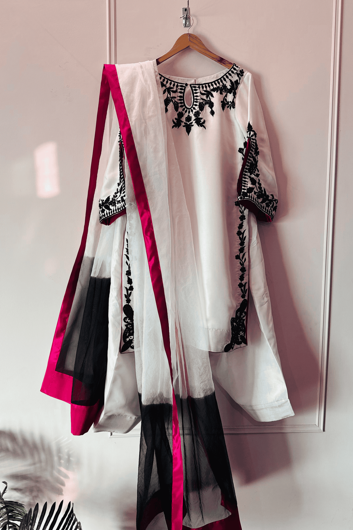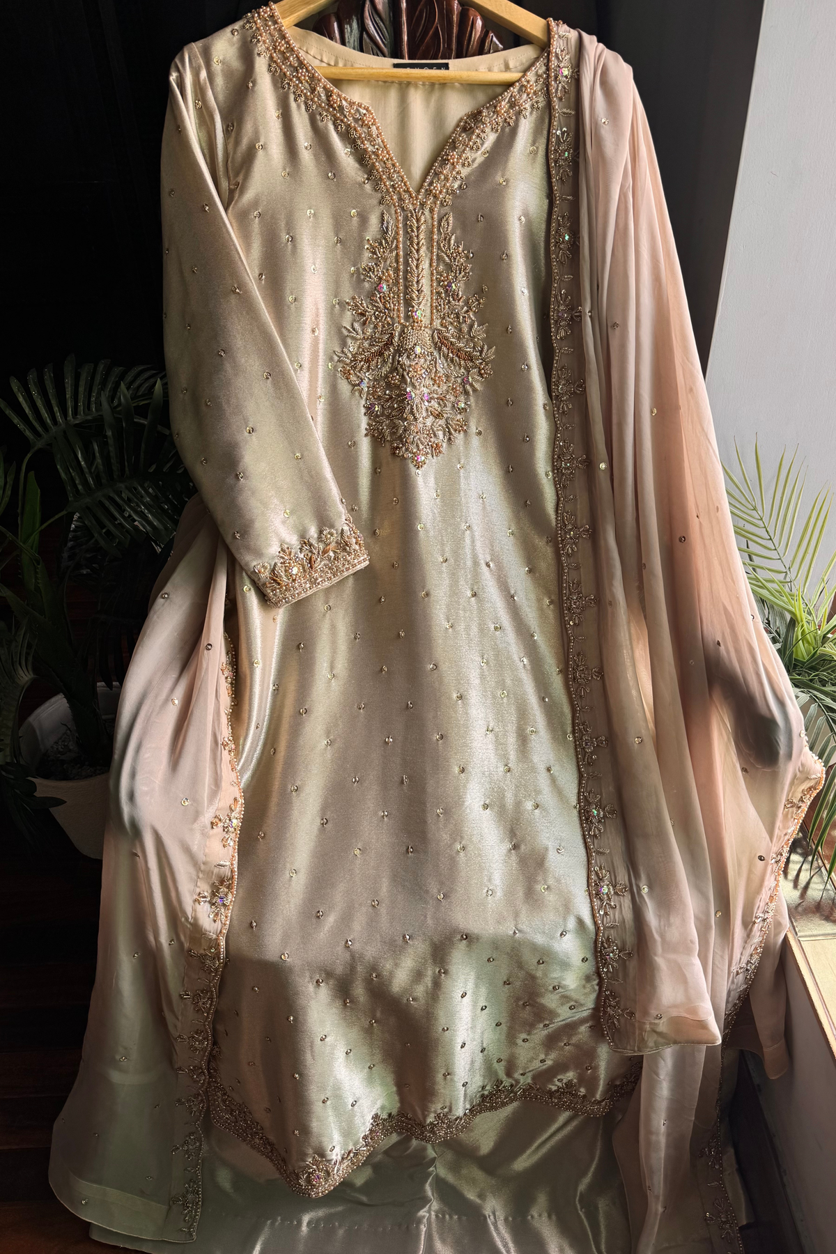 Color: Light Ivory Beige with Blush Pink dupatta