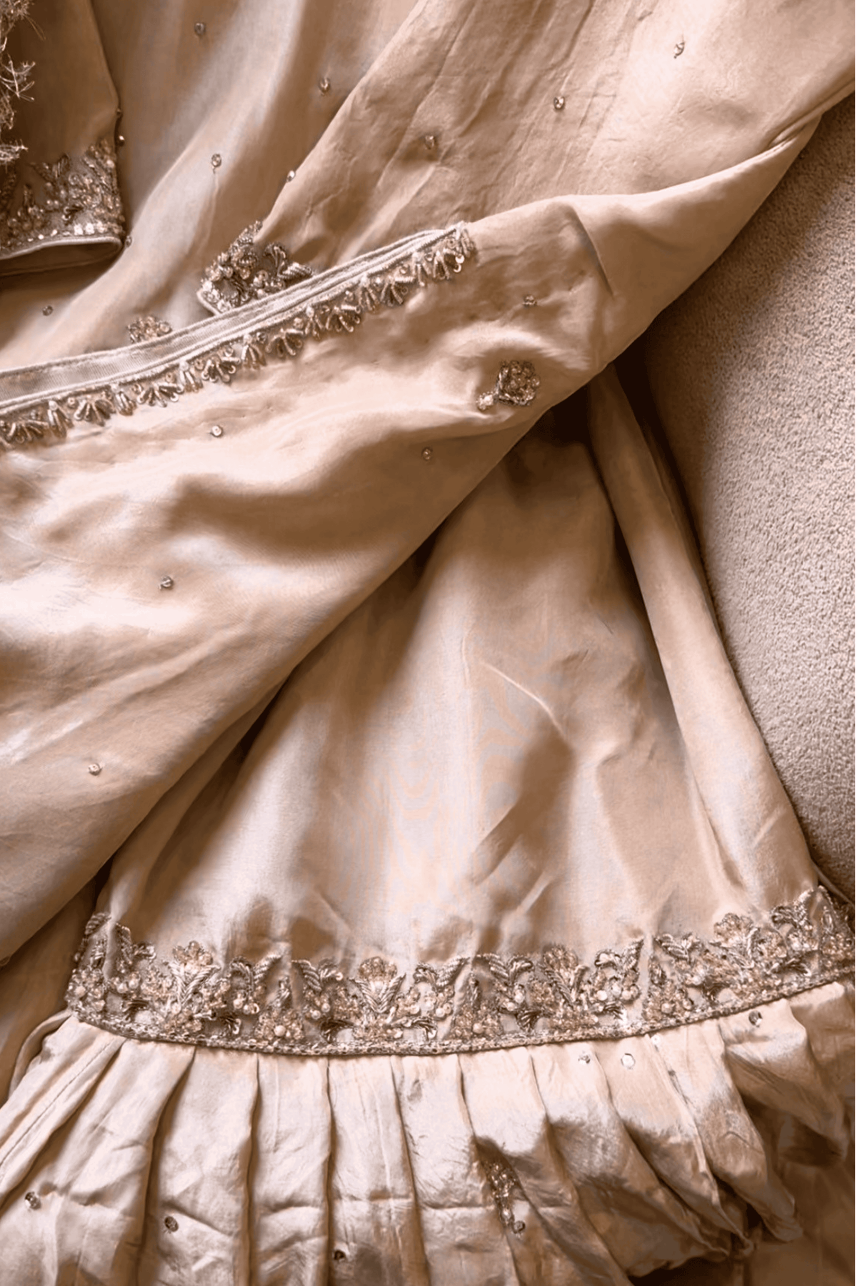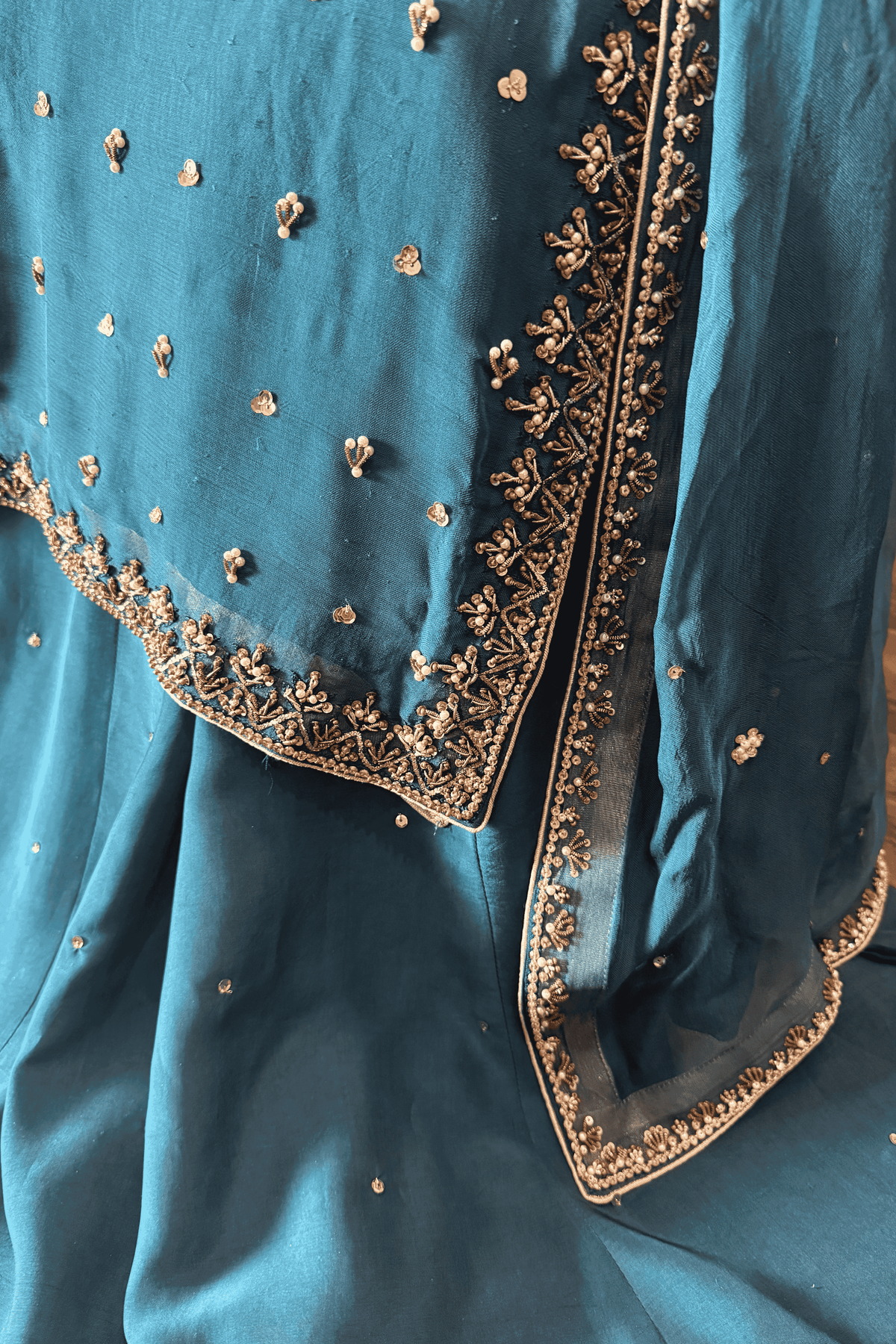 Embellishment: Pure Dabka Zardozi, Cutdana, Tilla, Sequins and Pearls