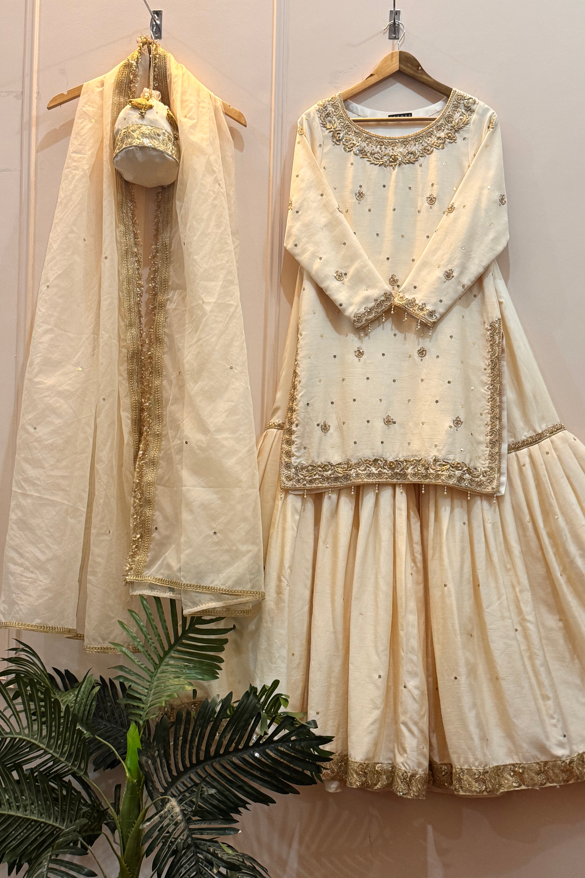 Color: Light Ivory Beige with Blush Pink dupatta